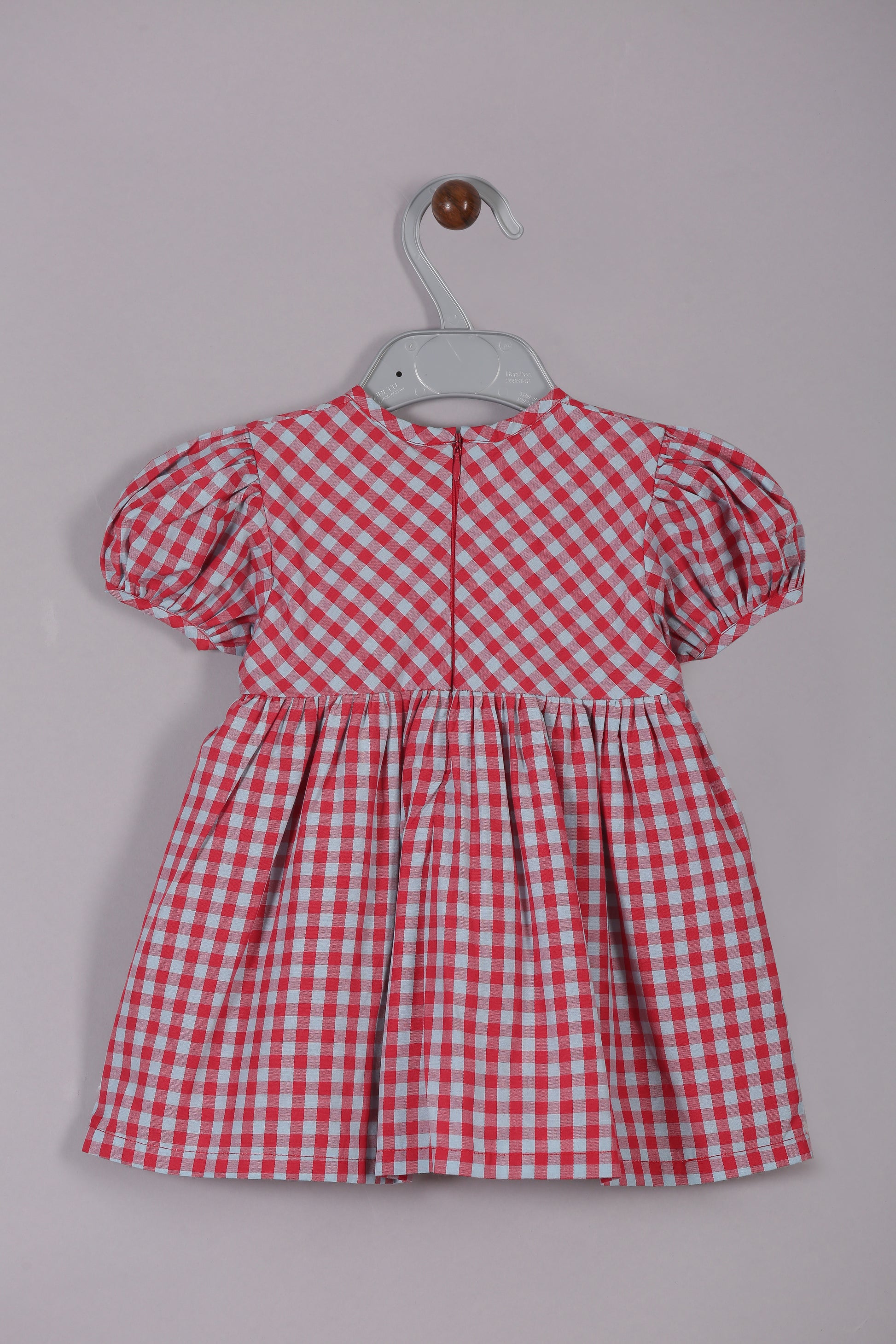 Aomi cotton poly Poly Cotton Gingham Check Puff Sleeve With Front Buttons Dress - Red