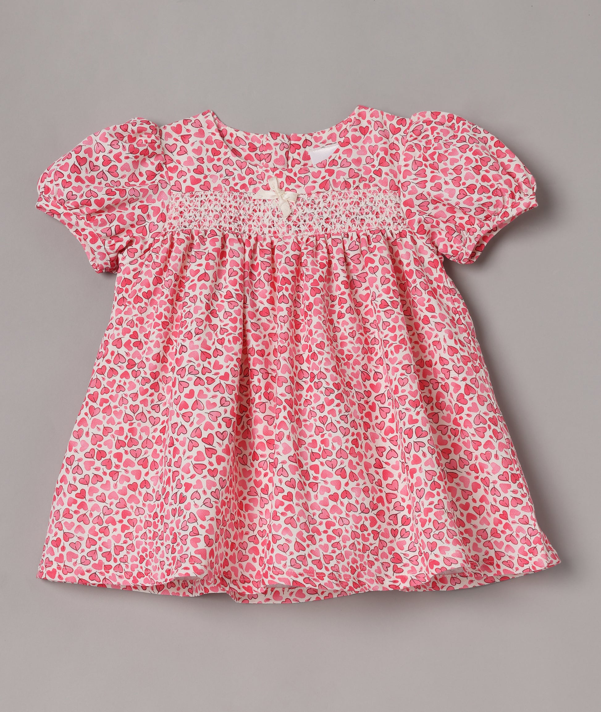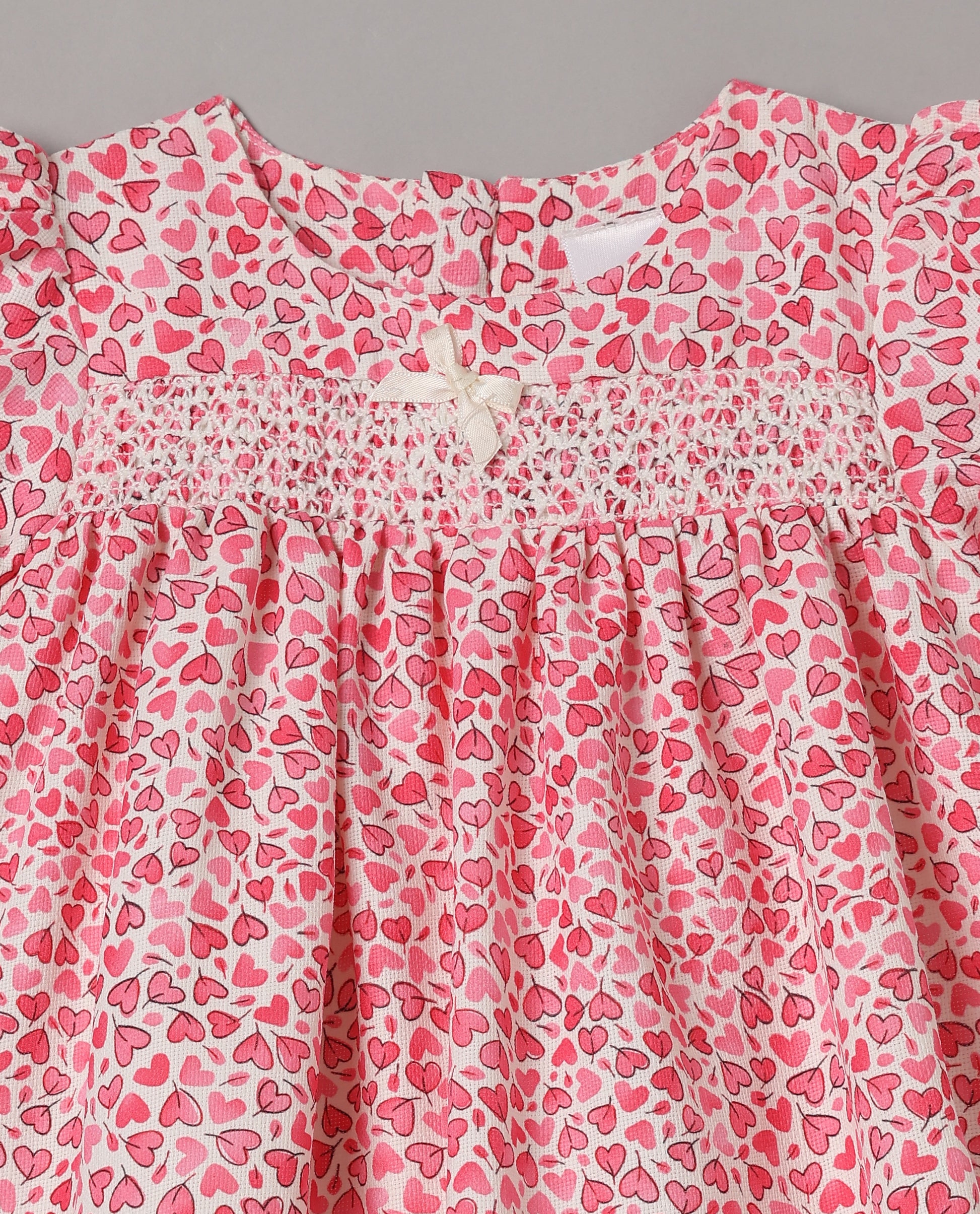 Aomi jute Heart Print Smocked Puff Sleeve With Bow Detail Dress - Coral
